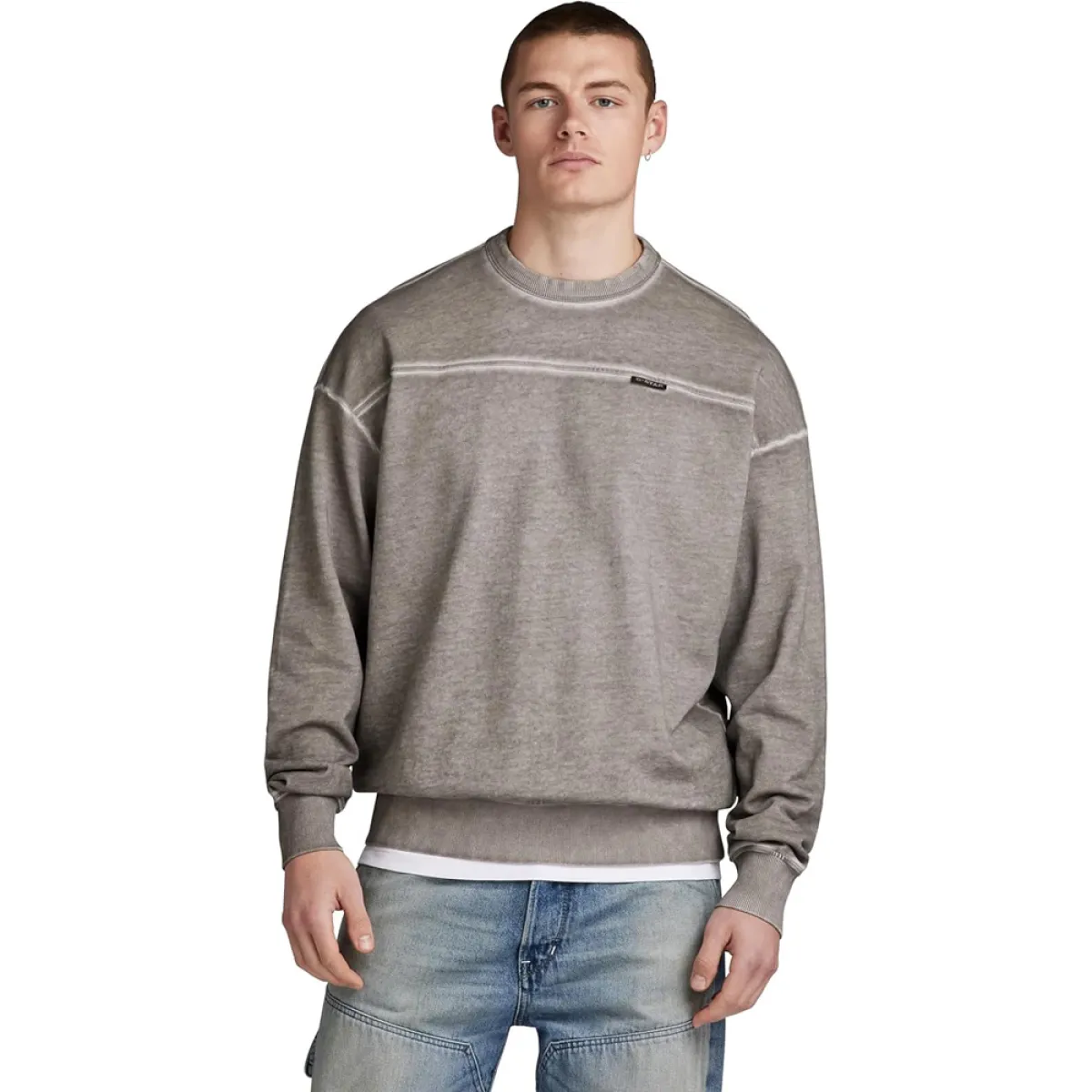 - G-STAR Uomo Garment Dyed Loose Sweater, Grigio (elephant ski
