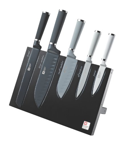 Richardson Sheffield Seasons High Quality Designer 5 Piece Knife Block Black - Grey - White includes Japanese style Santoku knives